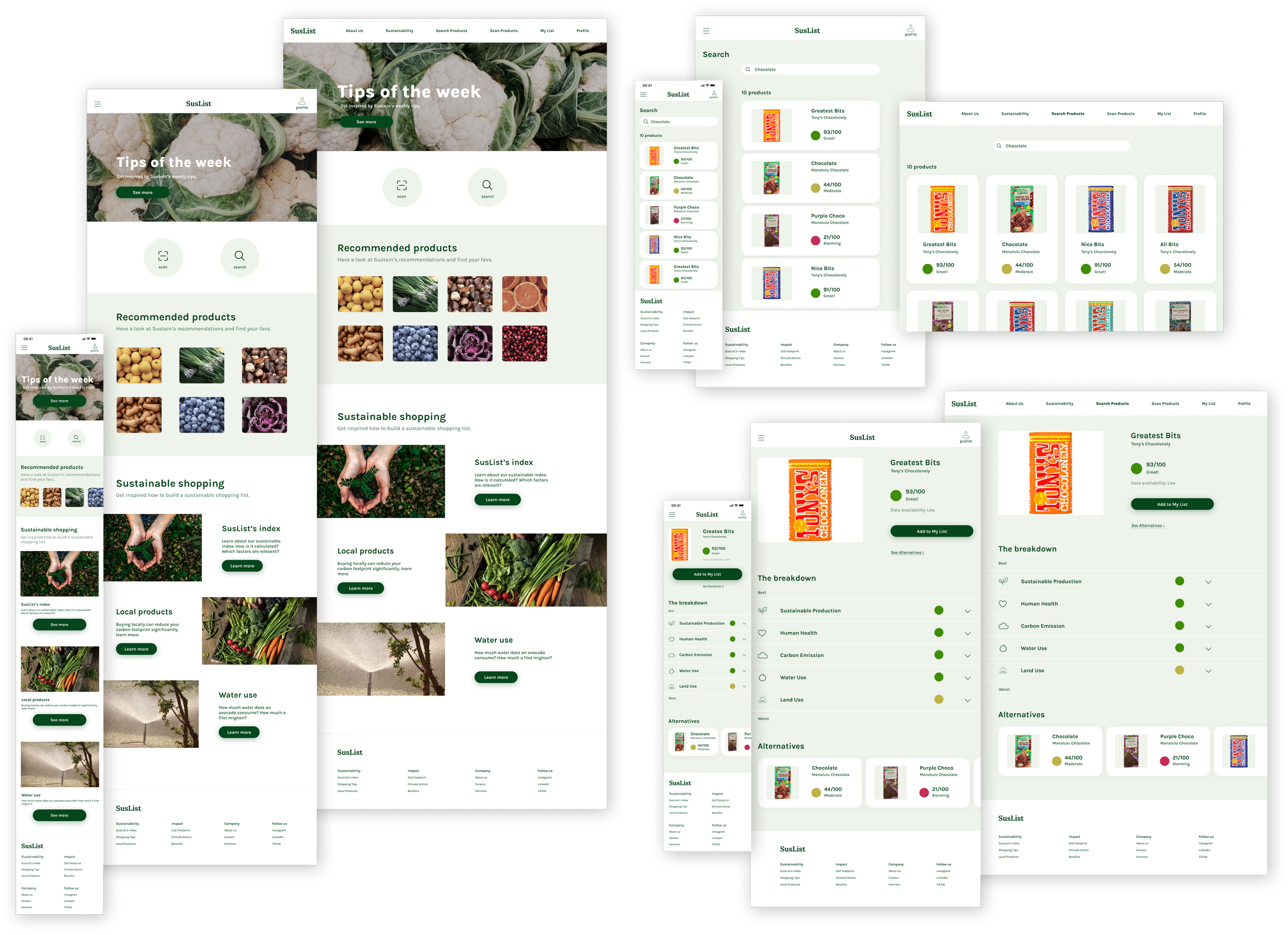 During the research phase I found out that users will use SusList’s services from a variety of devices. So, I felt it was important to extend the app with a responsive website. I optimized the website’s browsing experience for different device sizes, such as mobile, tablet and desktop so users have the smoothest experience possible.